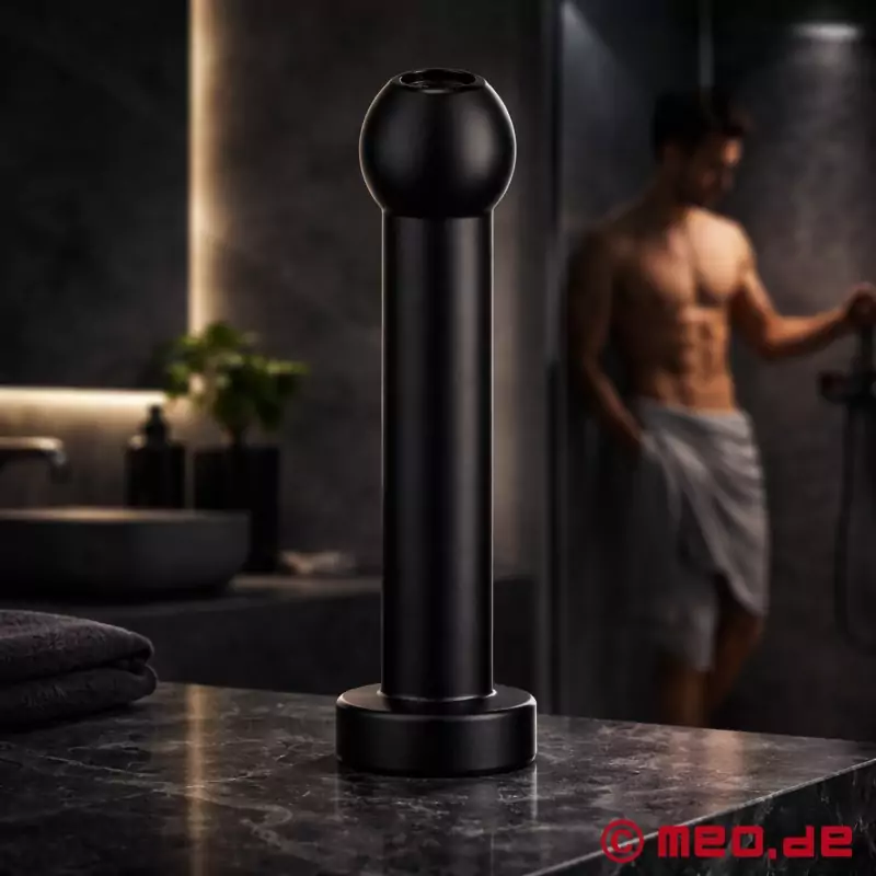 SUPER CLEAN-brusertilbehøret af sortlakeret aluminium passer til alle internationale bruserslanger med standardgevind og giver en meget praktisk og behagelig mulighed for anal eller vaginal rengøring.