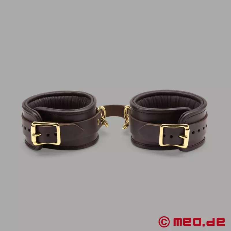 De håndlavede ankelhåndjern i læder fra Bohème-kollektionen fra MEO® er en perfekt kombination af elegance og funktionalitet. Disse udsøgte ankelhåndjern er lavet af udvalgt okselæder og blødt kalveskind, hvilket ikke kun gør dem ekstremt robuste og slidstærke, men også giver enestående komfort under en BDSM-session.