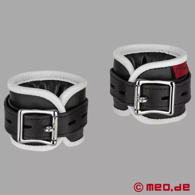 Kun læder, der opfylder vores høje kvalitetsstandarder, bruges til ankelhåndjernene i Amsterdam-kollektionen fra MEO ®. Vores ankelhåndjern er lavet af erfarne sadelmagere, som har mange års håndværksmæssig erfaring. Ankelhåndjernene er lavet med den største omhu - fra snit og syninger til den perfekte finish. Hver nitte og spænde er også præget med det originale MEO ®-logo, et kendetegn for den højeste kvalitet for bondageprodukter. Bondage-ankelhåndjernene i læder leveres i en elegant opbevaringspose med MEO ®-varemærket.