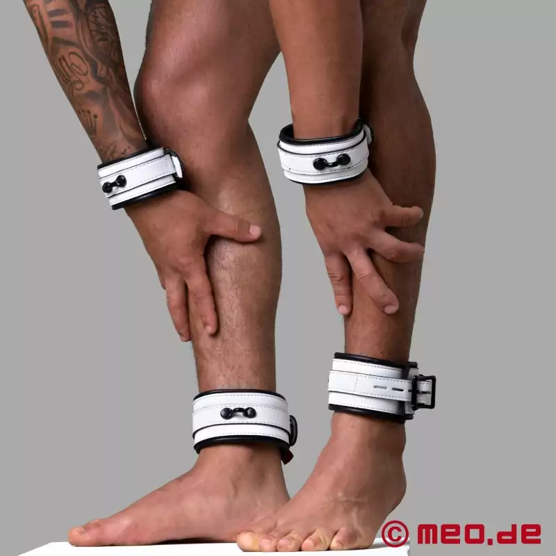 Vores ankelhåndjern har en D-ring, der giver dig mulighed for at fastgøre forskelligt BDSM-tilbehør fra Venezia-kollektionen. Vi har udstyret de størrelsesjusterbare øverste stropper på ankelhåndjernene med låsbare spænder i rustfrit stål. Det giver dig mulighed for at låse ankelhåndjernene under din session eller Self Bondage med en lille hængelås eller vores elektroniske MEOBOND-tidslås (fås separat).