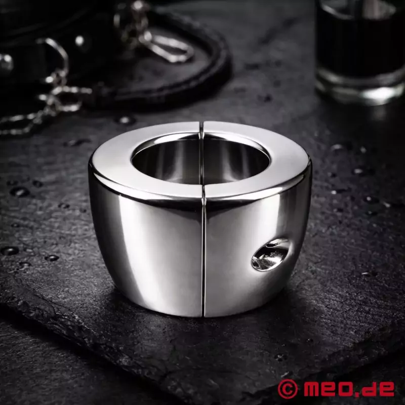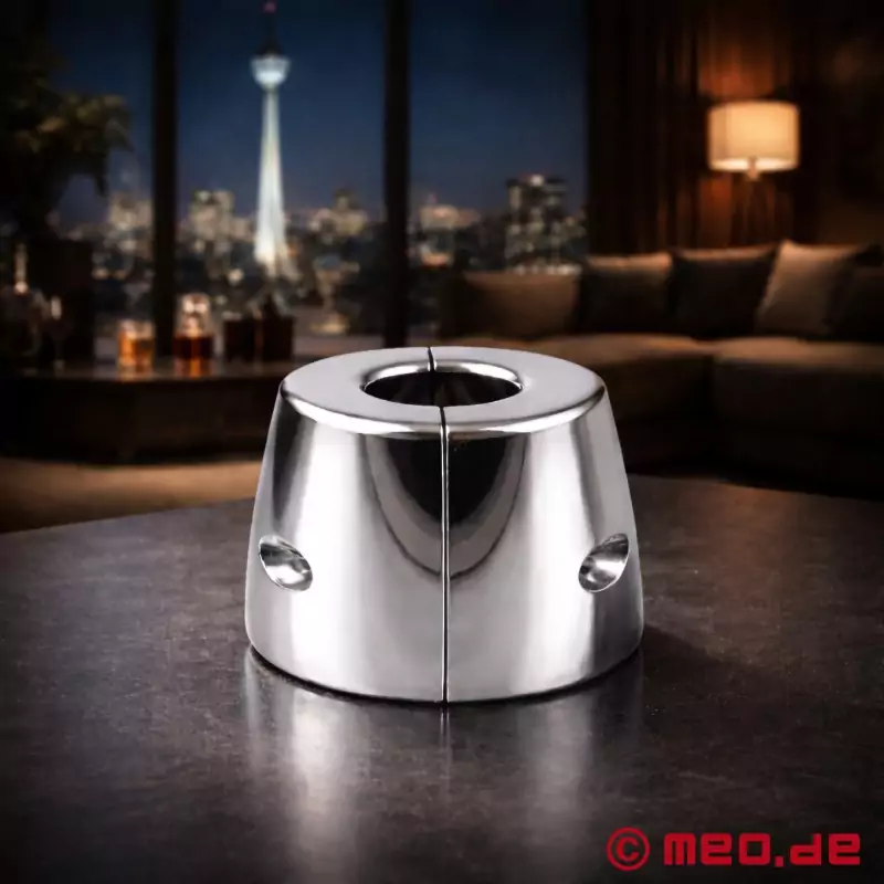 Solid, tung og designet til en tydeligt mærkbar udstrækning af pungen. BellLock™ fra MEO® er en ball stretcher i rustfrit stål med et klokkeformet design. Dens tunge vægt, ergonomiske form og todelte finish i høj kvalitet skaber en intens, meget direkte trækeffekt og en usædvanlig nærværende fornemmelse.