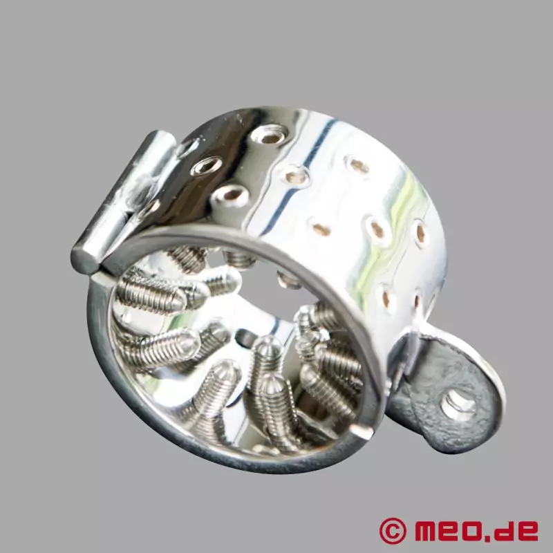 Med hver drejning af piggene (som fungerer som skruer) bestemmer du, hvor dybe og intense fornemmelserne bliver. Uanset om de er skarpkantede eller stumpe, kan piggene justeres præcist eller fjernes helt, hvis det ønskes. CBT-ringen holder penis og testikler sikkert på plads, mens dens egen vægt og de justerbare skruer giver et intenst tryk og en betagende fornemmelse.