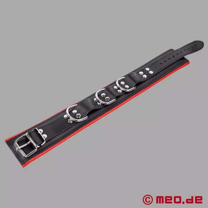 Bondagehalsbånd i læder - sort og rød - BDSM halsbånd fra Distinct™ serien fra MEO™ Germany.