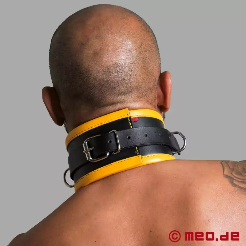 Bondagehalsbåndi læder - sort og gul - BDSM-krave fra Distinct™-serien fra MEO® Tyskland.