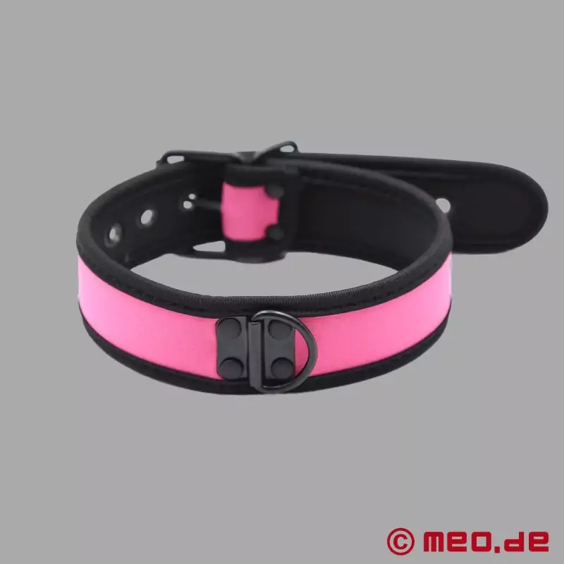 Neopren har for længst etableret sig som et praktisk og attraktivt materiale i BDSM-sektoren. Snavs, smøremidler, olier og sved kan let fjernes uden at belaste materialet unødigt. Desuden er neopren 100% latexfrit og derfor også meget velegnet til mange allergikere. Den slanke krave i sort og pink er ideel til "menneskehvalpe" og alle BDSM-elskere, der sætter pris på et markant udseende, behagelig bærekomfort og et overbevisende forhold mellem pris og ydelse.