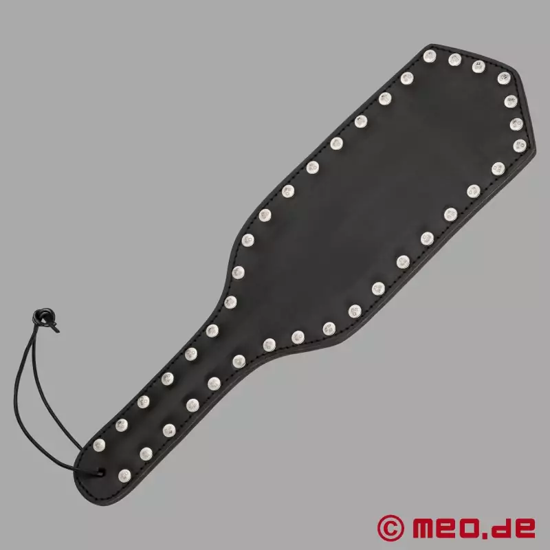 Denne BDSM paddle i læder med metalnitter er et absolut must-have for alle, der elsker intense spanking-sessioner! Fornemmelsen og det førsteklasses håndværk gør den til en ægte håndfladder. Takket være den robuste konstruktion ligger padlen fra MEO i Tyskland perfekt i hånden og er nem at svinge - til præcise og kraftfulde smæk, der vil begejstre dig!