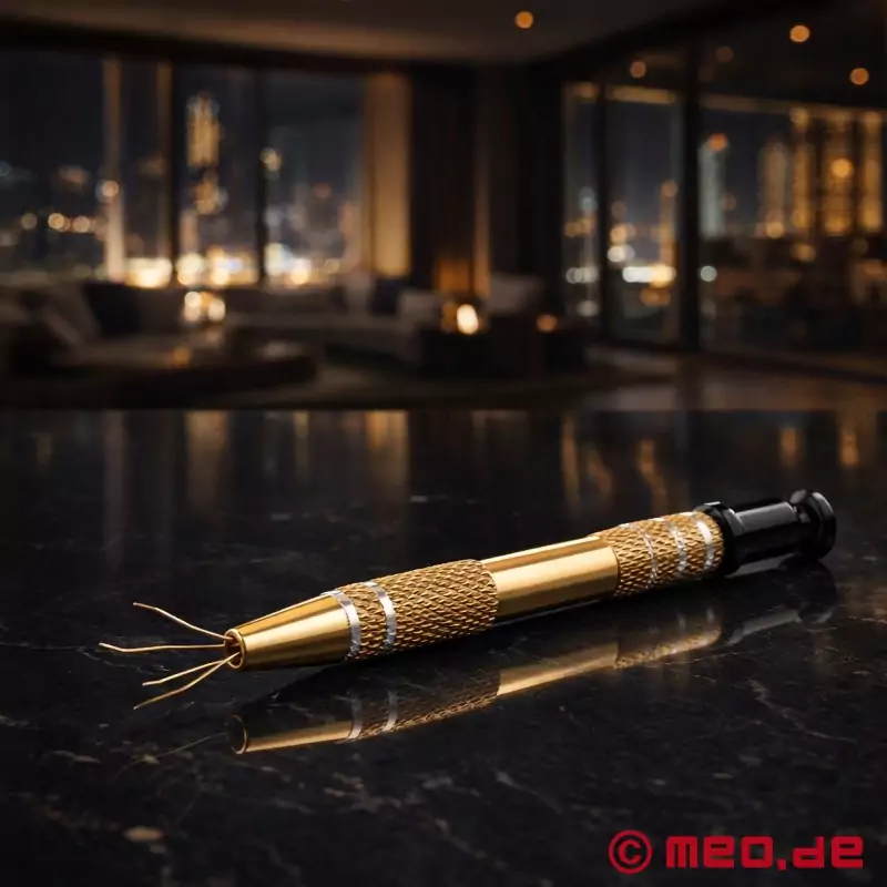 GripTease™ imponerer med sit minimalistiske, men elegante design i rustfrit stål og guldfarvet messing. Overfladestrukturen sikrer ikke kun en behagelig fornemmelse, men gør også tilbehøret let at rengøre og derfor særligt hygiejnisk.
