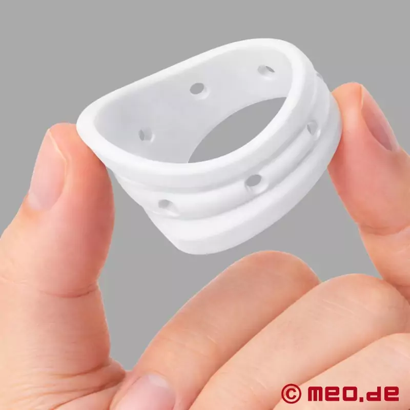 PulseEdge™ fra MEO® øger glansens følsomhed over for berøring og gør den fyldig og nærværende. Glansringen er fremstillet af fleksibel, hvid silikone og bæres under glansen. Takket være dens form og tætte pasform understøtter den en mere intens følelse, i løbet af dagen eller under sex, alene eller som par.