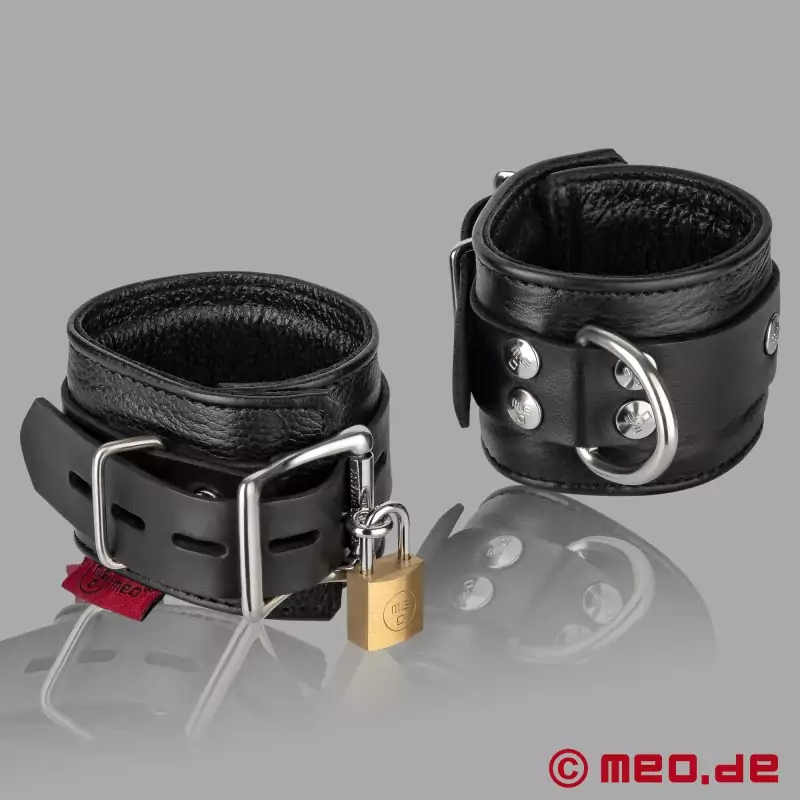 Vores håndværk giver pellen en behagelig følelse og en varm overflade. Pelle er særligt finkornet og slidstærkt. Pellens karakter bevares i vores håndjern, og de naturlige ujævnheder og ar skjules ikke kunstigt. Vores håndjern er sikkert fastgjort med nittede remme. Et solidt specialmetalspænde giver en ekstra låsemulighed med vores matchende sikkerhedslåse. De medfølgende hængelåse, herunder muligheden for vores revolutionerende digitale tidslås til Self Bondage MEOBOND, garanterer, at uautoriseret flugt er umulig.