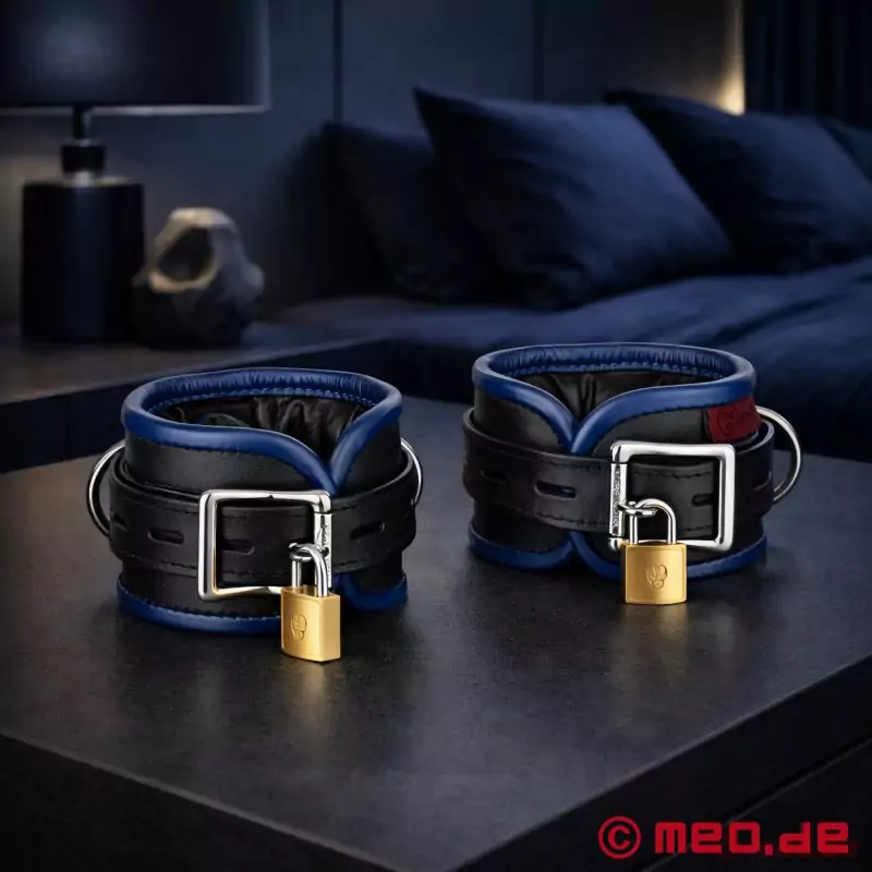 Der bruges kun udvalgt okselæder tilde håndlavede hånd jern fra Amsterdam Bondage-kollektionen fra MEO ®, hvilket gør håndjernene særligt robuste og sikrer, at de er meget behagelige at have på under bondage.