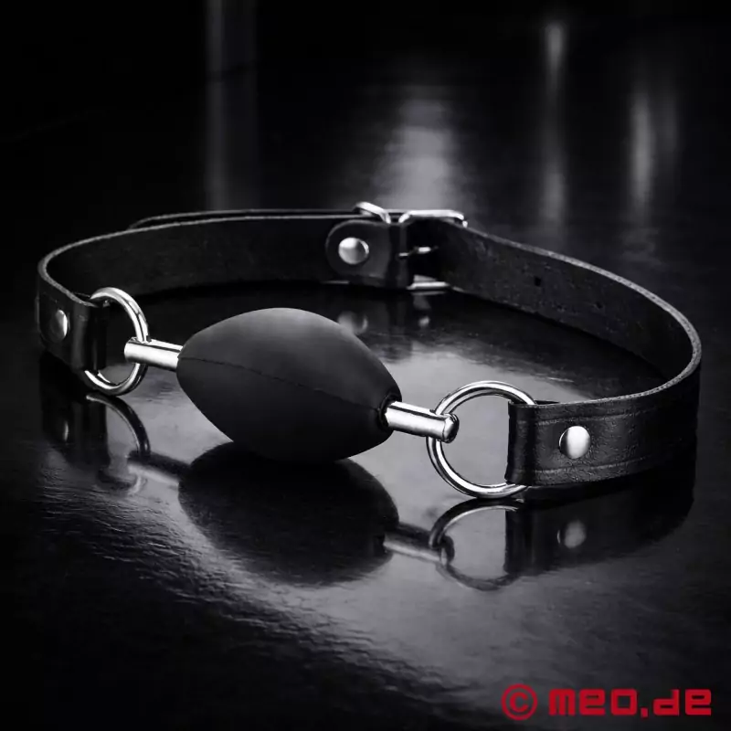 Den hovedtøjslignende fastgørelse af mundkneblen til hovedremmen sikrer en ubegrænset spytstrøm i mundvigene og derfor en særlig intens erotisk mundknebel: det helt perfekte look under en bondagesession!