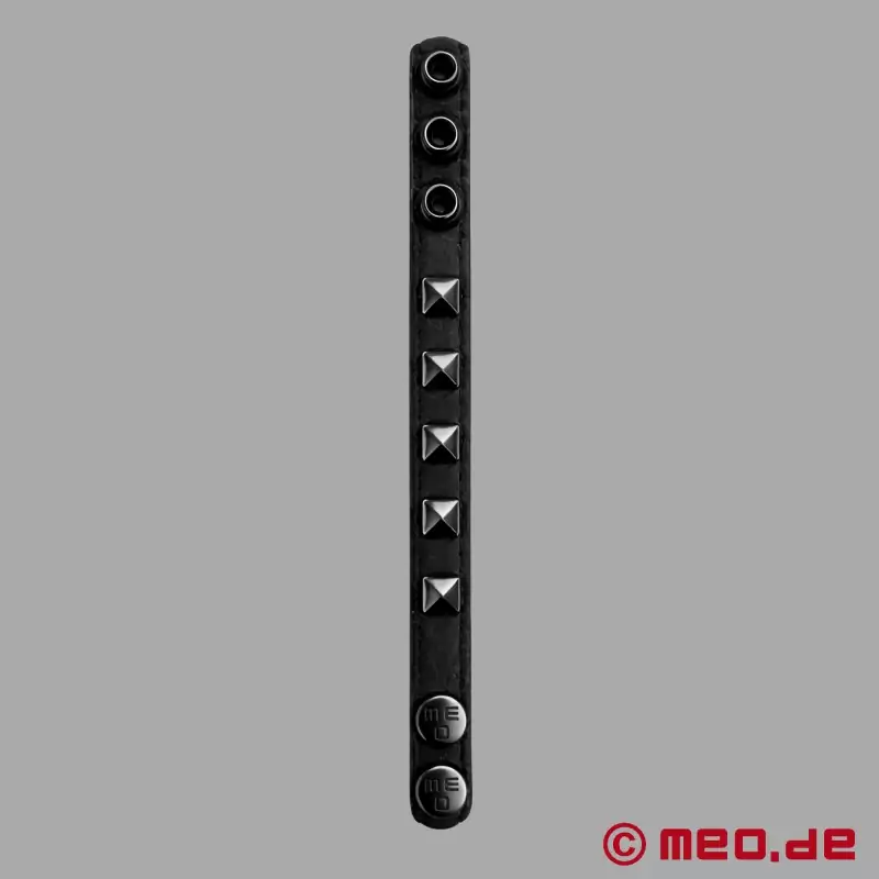 De sorte pyramideknopper giver cockringen et markant, maskulint look uden at være påtrængende. Samtidig sikrer okselæderet af høj kvalitet en behagelig pasform og en fornemmelse af høj kvalitet. De tre justeringsmuligheder gør det muligt at tilpasse størrelsen, så cockringen kan bæres strammere eller mere komfortabelt afhængigt af den ønskede pasform.
