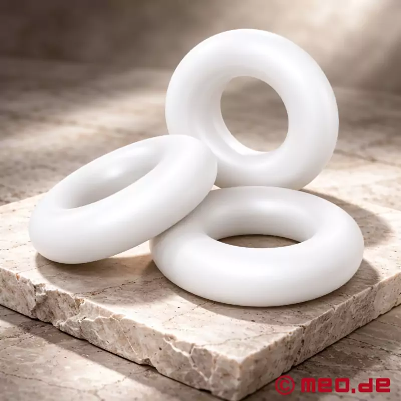 De fleksible ringe er lavet af silikone af høj kvalitet, er behagelige at have på og tilpasser sig perfekt til den enkelte mands anatomi. Donut-designet giver dem ikke kun et elegant udseende, men gør dem også nemme at bruge og sikre at have på.