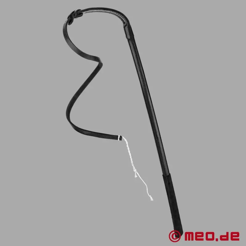 MEO®'s ungarske dressurpisk fra HURTME-serien minder om en klassisk amerikansk stokpisk. Den består af en ca. 55 cm lang, let fleksibel håndtagssektion, der går over i en læderklap. Herpå er der så flettet en læderklap af højkvalitetsremlæder.
