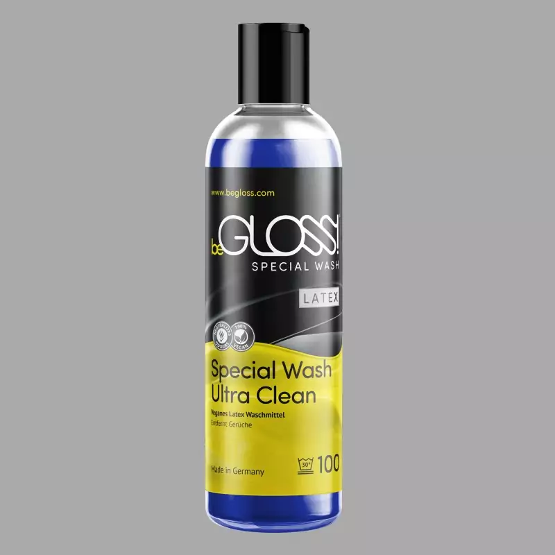 beGLOSS® Special Wash Latex™ er et vegansk vaskemiddel, der renser latex-tøj hurtigt, skånsomt og effektivt - selv ved lave temperaturer. Det fjerner olie- og fedtrester, neutraliserer lugte og forbereder latexprodukter optimalt til polering eller opbevaring. Fremstillet i Tyskland.