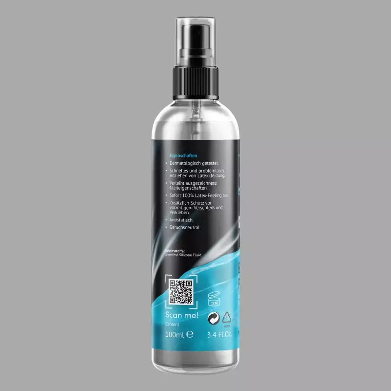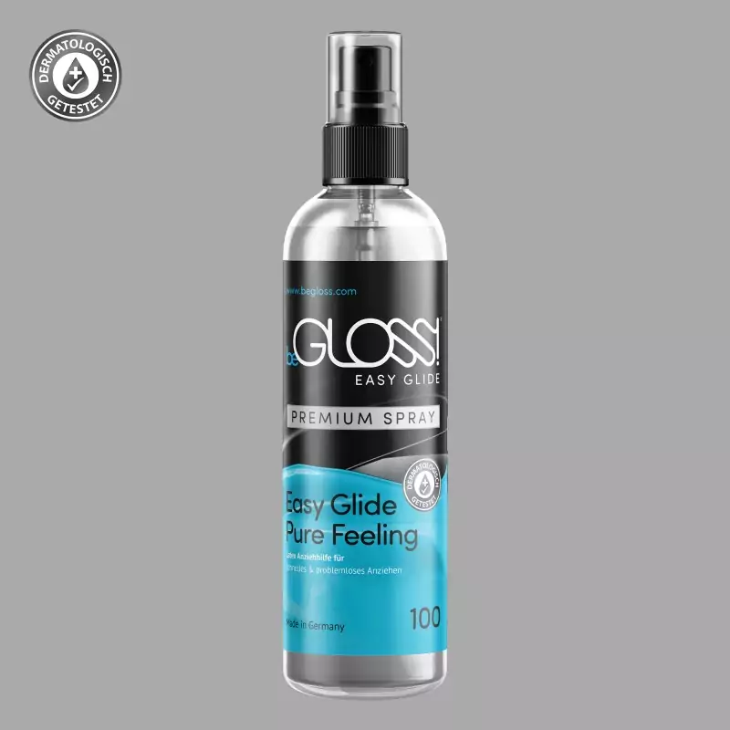 beGLOSS® Easy Glide™ er et førsteklasses forbindingsmiddel i et praktisk pumpesprayformat. Sprayen kan påføres særligt hurtigt og jævnt på latexbeklædning. Takket være den særlige viskositet er den meget økonomisk og ideel til tøj og masker af følsom, tynd latex. Den sikrer en behagelig glat fornemmelse. Fremstillet i Tyskland.