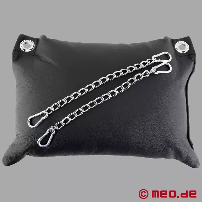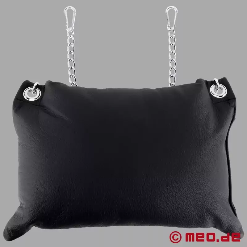 Vores læderpude er lavet af skånsomt garvet nappalæder, måler 23 x 32 cm og er behageligt polstret. Kvalitetspuden har 2 runde øjer i rustfrit stål, hvor den kan fastgøres til slyngekæder ved hjælp af karabinhager. Leveringsomfanget omfatter 2 metalkæder med en længde på 20 cm og karabinhager til at fastgøre puden, så intet kan glide. Uden kæder kan du selvfølgelig også bruge læderhynden af høj kvalitet som sofapude.