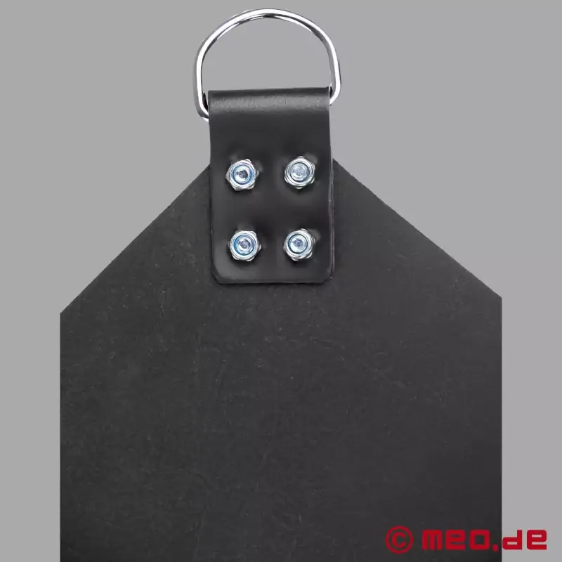 Denne klassiske slynge er en af vores mest populære fisting-slynger. Nittet flere gange med nitter i rustfrit stål og fremragende færdiggjort for at garantere dig den sikkerhed, du har brug for under sex i en slynge. Sling-måtten af høj kvalitet er lavet af det bedste læder og har 4 robuste D-ringe til ophængning under loftet eller i vores mobile sling-stativ.