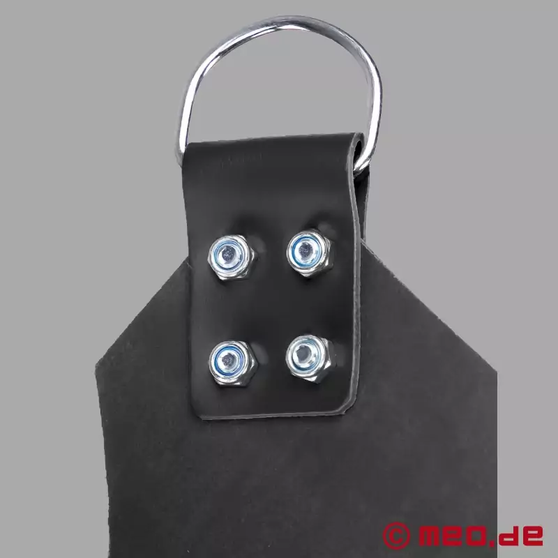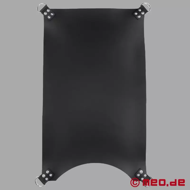 Denne klassiske slynge er en af vores mest populære fisting-slynger. Nittet flere gange med nitter i rustfrit stål og fremragende færdiggjort for at garantere dig den sikkerhed, du har brug for under sex i en slynge. Sling-måtten af høj kvalitet er lavet af det bedste læder og har 4 robuste D-ringe til ophængning under loftet eller i vores mobile sling-stativ.