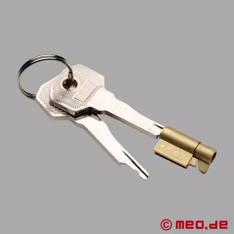 En KG-låsemekanisme er integreret i kyskhedsbæltet, så bæreren kan være sikker på, at ingen hængelås, som det er normalt med andre modeller, vil forstyrre. Leveringsomfanget inkluderer 2 nøgler til keyholderen!