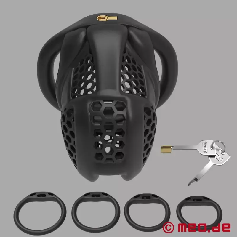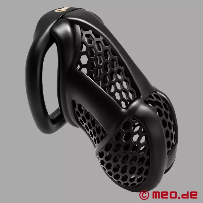 BlackGuard™ er særlig stærk, når det drejer sig om langvarig kyskhed. Den sidder sikkert, kan tilpasses og holder pålideligt penis under lås og slå. Samtidig sikrer den sofistikerede bikagestruktur med sine ventilationsåbninger luftcirkulation og understøtter dermed en tør og behagelig pasform, selv ved langvarig brug.