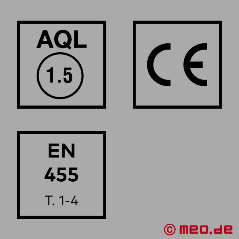 Perfect for reducing messes and adding a bit of sexual thrill to your fisting sessions, the MEO.de Ass Play Fisting Gloves are 100-count latex gloves in a pretty, seductive black color. Unpowdered, these gloves are available in a Medium size or a Large size and designed to fit either hand. As these gloves are made of natural latex, people with LATEX ALLERGIES should definitely not partake.